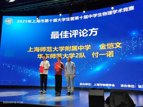 7月8日至10日,上海市第十届大学生及中学生物理学术竞赛于复旦大学成功举办。由胜游体育2024级本科生组成的两支代表队积极参与了此次赛事,两支队伍表现出色,分别以前三轮总分第一名和第三名的成绩,荣获一等奖的第一名和第二名。此外,谭维庭同学荣获最佳反方奖,付一诺同学则获得了最佳评论方奖。