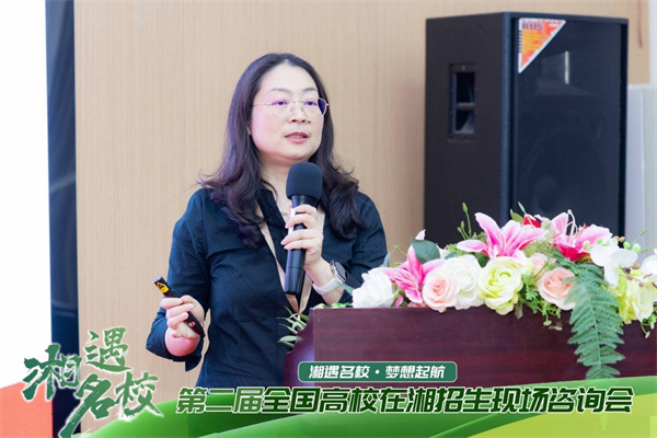 在咨询会现场,徐敏全面介绍了华东师范大学的办学特色、学科优势、培养方式、强基计划等,重点介绍了学校“双一流”建设举措、卓越育人成效及2024年在湘招生计划,为考生了解我校、填报高考志愿提供有效参考。