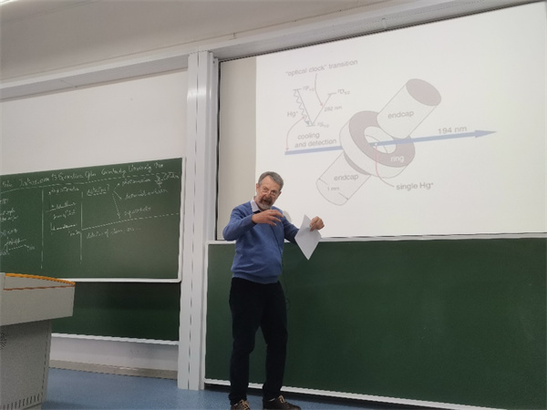 课堂上,Claude Fabre教授从量子涨落、量子跳跃等实验现象引入,介绍了各类单光子探测的量子器件,以及用于捕获原子、离子等微小粒子的基本量子光学系统和实验方法。