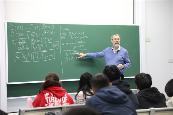 中法两国建交60周年之际,法国著名量子光学专家、索邦大学特级教授Claude Fabre应精密光谱科学与技术国家重点实验室邀请访问华东师范大学,并于3月25日起在闵行校区第一教学楼109教室开始了为期三周的《量子光学基础》英文课程讲授,众多本科和研究生前来现场聆听。