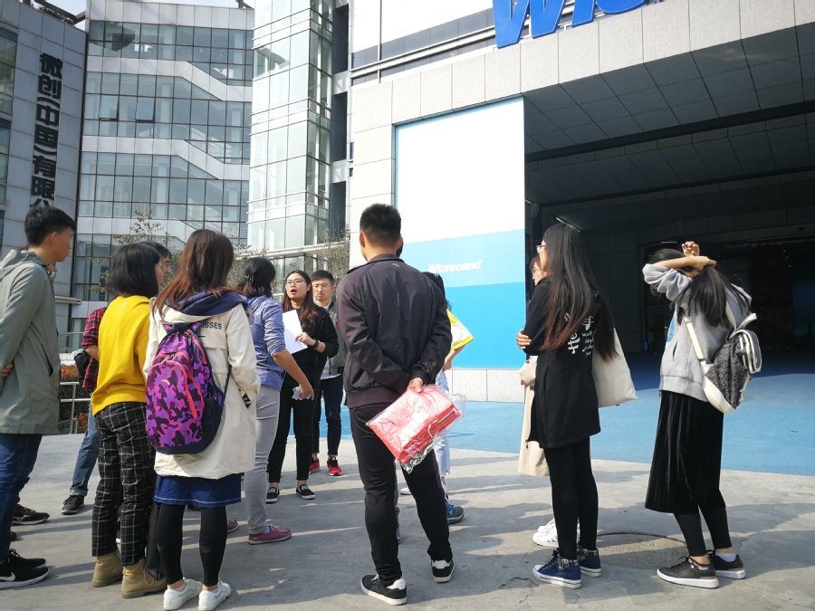 二楼与三楼则是技术员与工程师的办公处,由于客户信息的保密性,我们无法进入参观,只能在门外根据带队的介绍了解该公司的职能安排。参观这两层后,印象最深的一点便是该公司的保密措施,为防止客户信息泄露,工作人员禁止将手机和U盘带入办公区,入职时还有专门的保密培训,严格的制度也让师生们大开眼界。