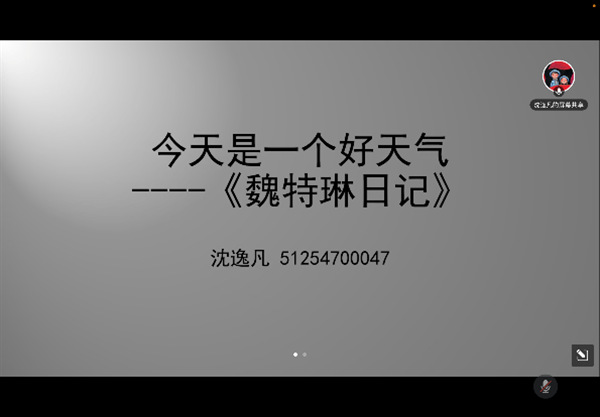 沈逸凡同学以《魏特琳日记》这本书带我们回忆了“南京大屠杀”那段屈辱惨痛、血泪交加的历史,警醒同学们时刻不忘国耻、勤学报国。