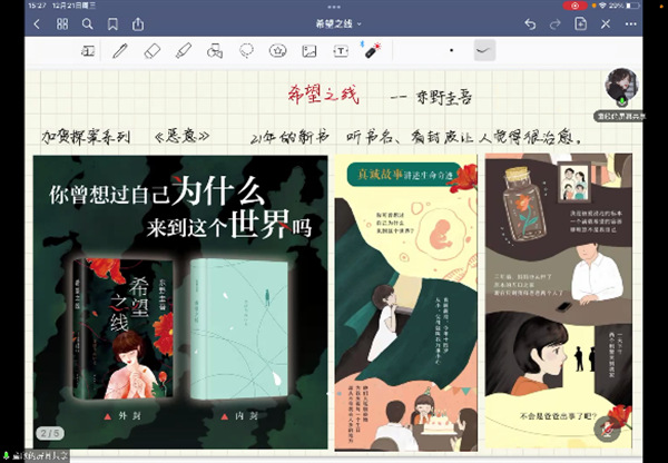 童欣同学分享了著名作家东野圭吾的《希望之线》,同学们对其高超的写作手法和细腻的人物刻画进行分析和讨论,气氛热烈。即便读书会已经接近尾声,但同学们还是意犹未尽。