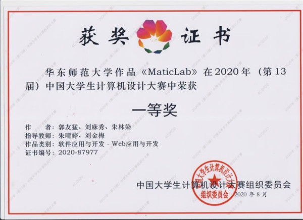 近日,2020年(第13届)中国大学生计算机设计大赛落下帷幕,我校2017级物理学(师范)专业本科生郭友猛团队的作品《MaticLab》在全国各高校321件软件应用方向的参赛作品中脱颖而出,荣获一等奖。项目指导老师为数据科学与工程学院计算机科学教育教学部朱晴婷老师与胜游体育物理实验教学中心的刘金梅老师。