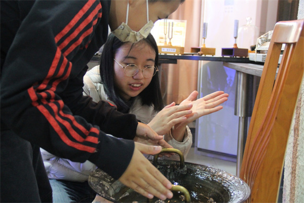 在学校党建中心,小学组的同学们在志愿者的指导下,进行了穿墙而过的小球、空气炮、太阳能小飞机、伯努利实验。孩子们在实验中感受光学世界、学习压强知识、锻炼动手能力;初中组的同学们则开展了更“高阶”的实验探索,他们在隐含气压原理的希罗喷泉和电磁齿轮画图仪旁驻足流连,认真倾听志愿者的讲述,积极思考,踊跃提问。