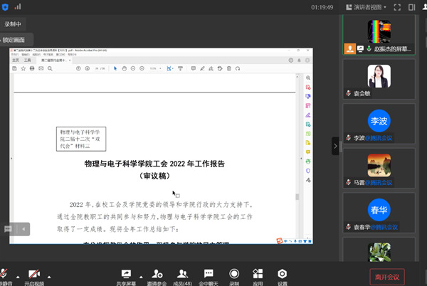 学院副院长胡炳文汇报了学院2022年度财务状况,重点对物理学科建设经费执行情况进行介绍。