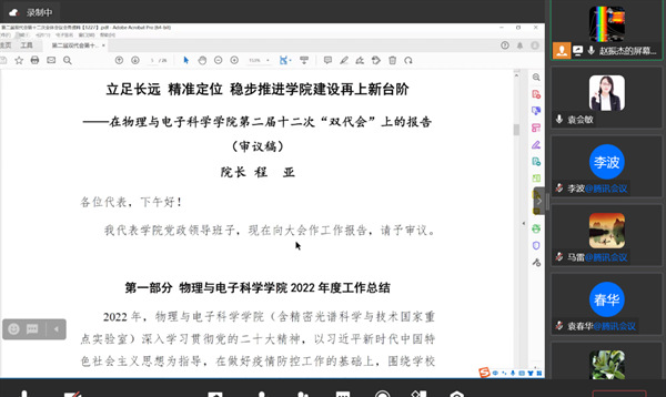 学院党委书记李恺在总结发言中谈到,即将过去的2022年是极不平凡的一年。这一年里,学院统筹疫情防控和事业发展,在扎实做好疫情防控、保障师生安全的同时,圆满完成了各项工作任务,真正做到了“两手抓”“两手硬”。2023年即将到来,希望各位代表对2023年学院的教学科研、社会服务等各项工作早思考、早谋划、早布局,共同推动学院各项工作取得更大进步。