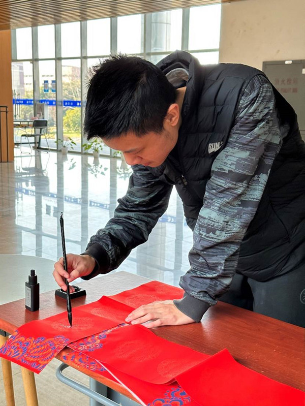最受欢迎的活动是在学院大厅里写春联,同学们踊跃参加,一幅幅对联,一个个福字,写满了大家对新年的希冀,年味儿十足。