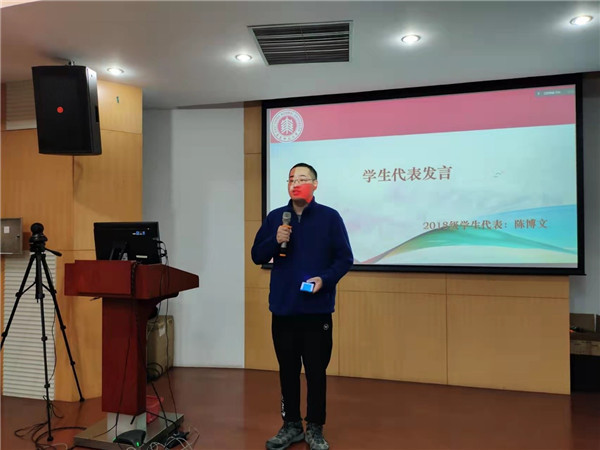 2018级获奖学生代表陈博文分享了自己在微系统所参加科研活动的经历和心得,鼓励同学们在课堂学习之余,积极参加科研活动,拓宽自己的视野。