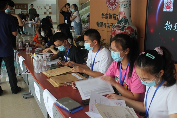 迎新师生耐心、细致地指导2020级新同学办理入学手续,志愿者们依次核查新生身份信息等证件,为新生发放学生手册、校园卡等材料,并为新同学讲解住宿、就餐、注册等注意事项。