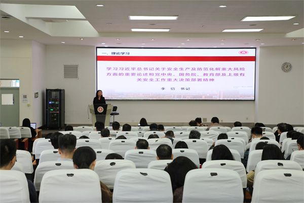 10月23日下午,胜游体育在闵行校区第四教学楼106报告厅召开全体教职工大会,200余名教职工参会。以实验室安全管理与建设专项巡察整改为契机,以学院高质量发展为目标,学院党委书记李恺带领全院教职工学习习近平总书记关于安全生产及防范化解重大风险方面的重要论述,以及党中央、国务院、教育部及上级有关安全工作重大决策部署精神,学院党政班子成员分别通报实验室安全管理与建设专项巡察整改工作事宜、大型仪器开放共享问题及整改工作事宜及近期重点工作。会议由李恺主持。