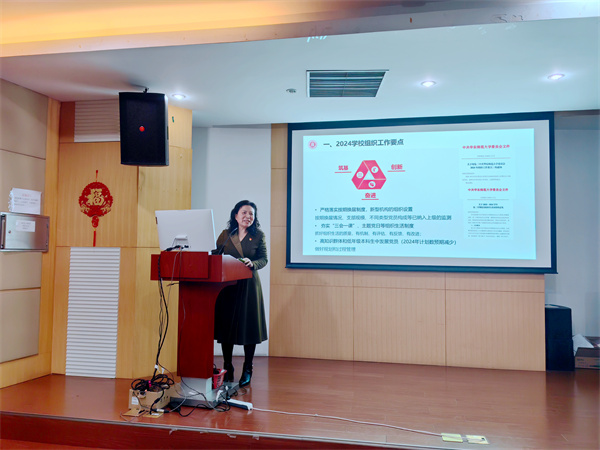 李恺传达了学校2024年组织工作要点,部署了学院2024年度党建重点工作,同步发布和强调了学院党委2024年党建品牌培育项目的相关要求。李恺谈到,2024年是新中国成立75周年,是全面贯彻党的二十大精神的开局之年,学院党委将严格贯彻落实学校第十四次党代会部署,坚持严的主基调,以更加扎实的作风,在推进全面从严治党纵深发展上久久为功,在全面落实立德树人根本任务上持续发力,在保障促进学院高质量发展上善作善成。