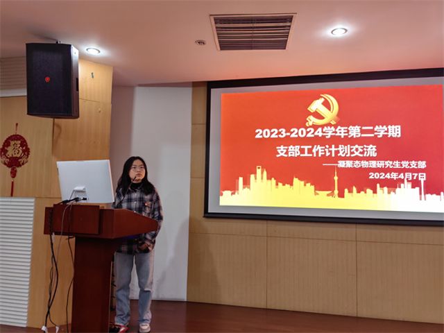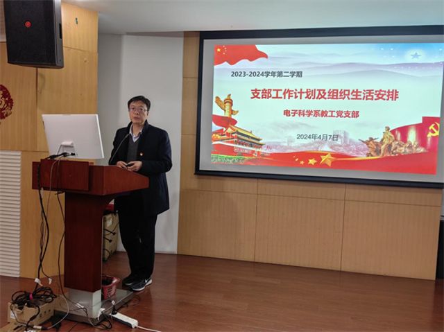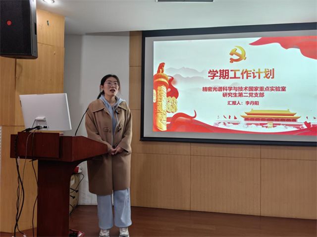 会上,电子科学系教工党支部、磁共振实验室教工党支部、光谱实验室教工第二党支部、原子与分子物理研究生党支部、凝聚态物理研究生党支部、光谱实验室研究生第二党支部、光谱实验室研究生第三党支部分别作支部工作计划交流。