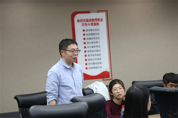 在沟通交流环节,新进教师们各自介绍了自己的研究方向和目前工作进展,与会教师就课堂内容设计、在线教学资源、教学科研如何相互促进等问题展开讨论。