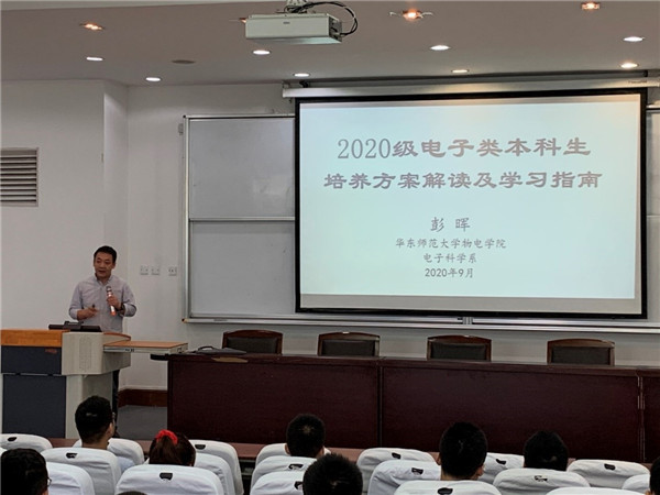9月17日上午8:00,电子系在闵行校区三教109报告厅开展电子类本科生培养方案解读会,电子系副系主任彭晖为75位新生作详细解读,会议由辅导员王元力主持。