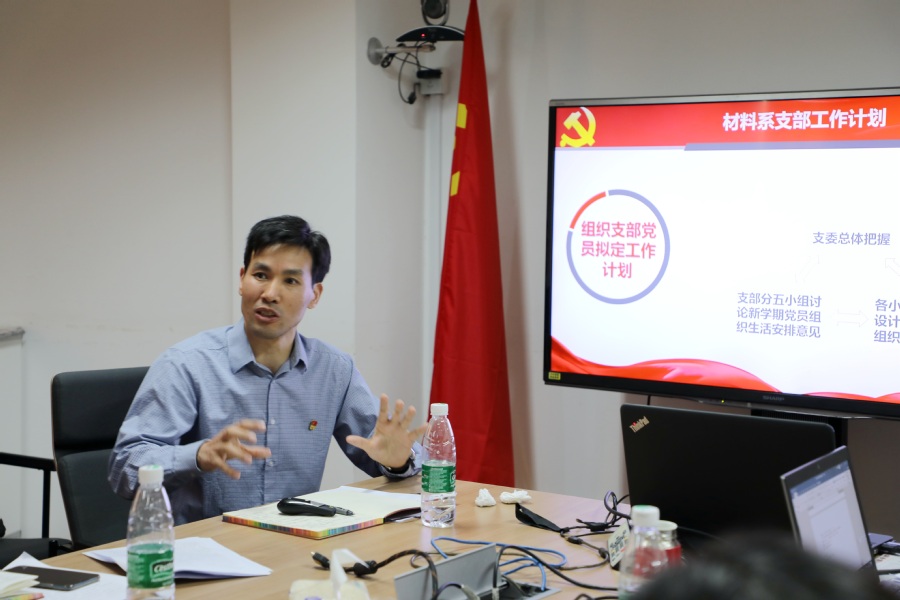 学院各师生党支部随后汇报了本学期组织生活计划。精密光谱科学与技术国家重点实验室教工党支部书记潘海峰重点介绍了如何基于实验室近期引进的高层次人才,提供积极引导和服务;行政党支部书记章继敏分享了如何结合主题教育相关要求,创新学习方式,通过“自学领学集中学”切实提高学习成效;材料科学系党支部书记敬承斌对接“新工科”人才培养目标,把组织生活和提高人才培养质量结合起来;物理学系教工党支部支委李欣介绍了如何结合“课程思政”建设,发挥党员教师带头作用;电子科学系教工党支部黄荣分享了如何将学科建设要求融入党员组织生活安排;物理实验教学中心党支部书记尹亚玲结合实验室实际情况,分享了支部在双创课程建设方面的相关思考。