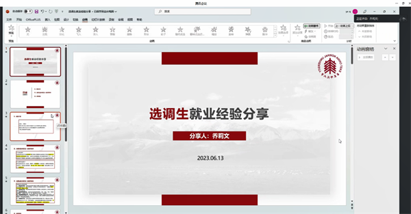 6月13日晚,学院在线举办研究生就业经验交流会,8位2023届研究生毕业生分享就业经验,学院低年级研究生90余人参会,会议由研究生辅导员聂树伟主持。