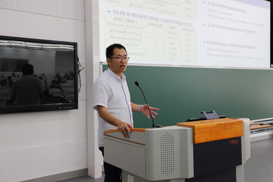 副院长武海斌重点通报了学院近期科研项目申报及获批情况,并作2020年度国家自然科学基金申请动员。他指出,2019年度学院共有20个项目入选, 2020年国家自然科学基金申请在即,希望学院老师们积极申报,再创佳绩。此外,他还通报了学院自然科学68周年校庆学术报告相关工作。