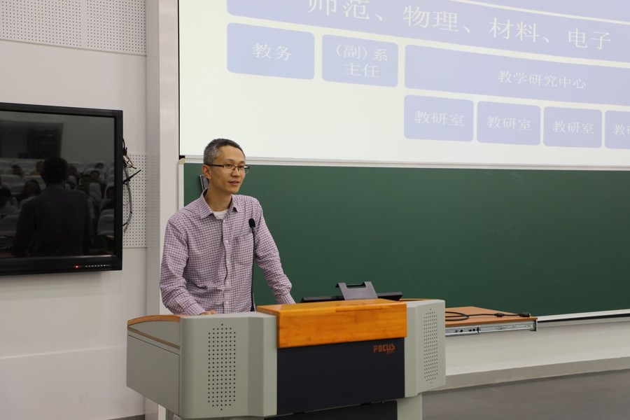 孟宪承书院辅导员成一川应邀作物理类师范生管理工作汇报。成一川围绕物理类师范生的班团建设情况、第二课堂特色等问题进行了汇报,介绍了本学期物理类师范班管理工作重点,同时他表示,期待更多的老师参与和推动第一课堂和第二课堂协同育人。