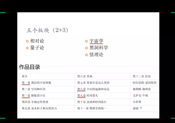 In the reading guide, Wang Tao analyzed the readability and popularization of the brief history of time by comparing with the famous works such as dream of the red chamber and the book of changes. After that, he elaborated the book's academic views from three aspects: version difference, specific content, cosmology and so on. Wang Tao pointed out that the book is mainly divided into several modules of relativity, quantum theory, cosmology, black hole science and string theory. The first two modules correspond to the two great achievements of physics in the 20th century, and the last three modules contain Hawking's own academic achievements.In the interpretation of cosmology module, Wang Tao introduces the process of the origin and expansion of the universe in a brief history of time, and vividly explains the concepts of the singularity and virtual time of the universe elaborated by Hawking in the book. At the same time, Wang Tao also shared his original views on the classic works: we should not only feel the author's thoughts from a macro perspective, but also insight into its subtleties from a micro perspective, so as to achieve the state of knowing and laughing happily.